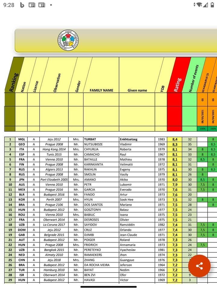 Тэгвэл Олон улсын жүдо бөхийн холбооноос олимп шүүж буй 29 шүүгчийн эрэмбэлэхэд манай шүүгч Т.Энхцэцэг тэргүүлжээ.