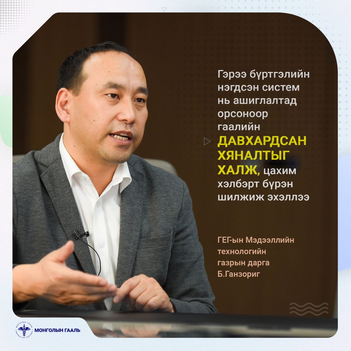 Гаалийн байгууллагаас энэ оны нэгдүгээр сарын 01-ээс эхлэн “ГЭРЭЭ БҮРТГЭЛИЙН НЭГДСЭН СИСТЕМ”-ийг нэвтрүүлж эхэлжээ. Уг систем ашиглалтад орсоноор давхардсан хяналт, шалгалтыг халж, цахим үйлчилгээг нэг шатаар ахиулсан талаар Гаалийн ерөнхий газрын Мэдээллийн технологийн газрын дарга Б.Ганзоригтой ярилцлаа.