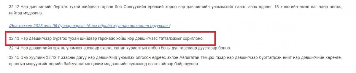 Тэгвэл Сонгуулийн тухай хуульд зааснаар "Нэр дэвшигчээр бүртгэх тухай шийдвэр гарснаас хойш нэр дэвшигчээс татгалзахыг хориглоно" гэж цагаан дээр хараар тодоор бичиж өгсөн. Үүнээс харахад, шударга дүр эсгэж буй “Шарк“ Д.Энхтүвшингийн энэ удаагийн жиргээ нь ээлжит нэгэн "попрол" нь байх бололтой.