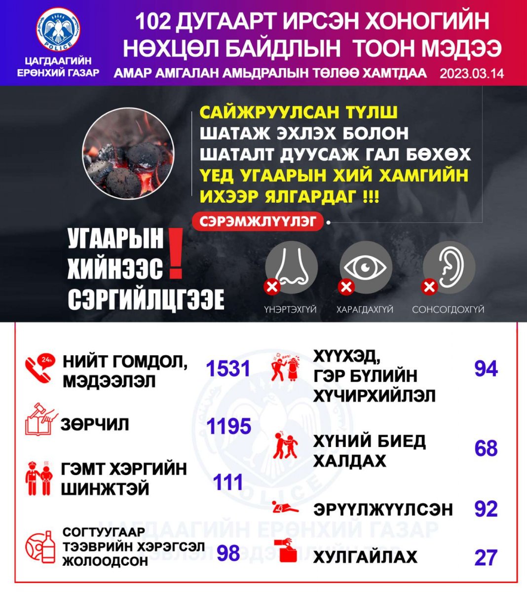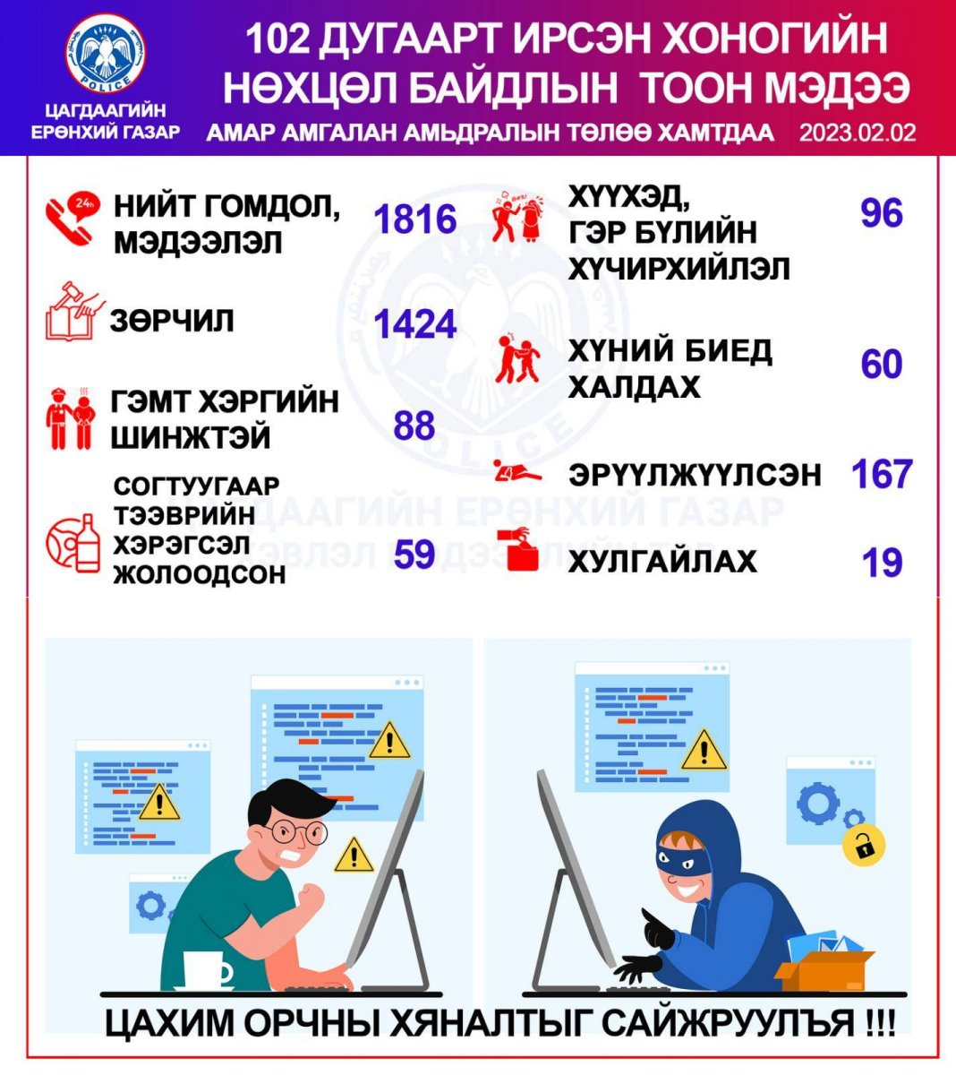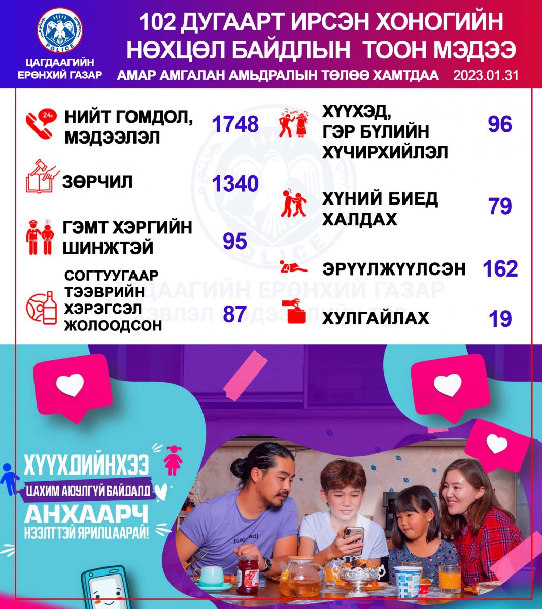 - НЦУГ-ын Гэр бүлийн хүчирхийлэл, хүүхдийн эсрэг гэмт хэрэгтэй тэмцэх хэлтсийн ахлах мэргэжилтэн , ахмад С.Сайнбилэг нар тодорсон юм.