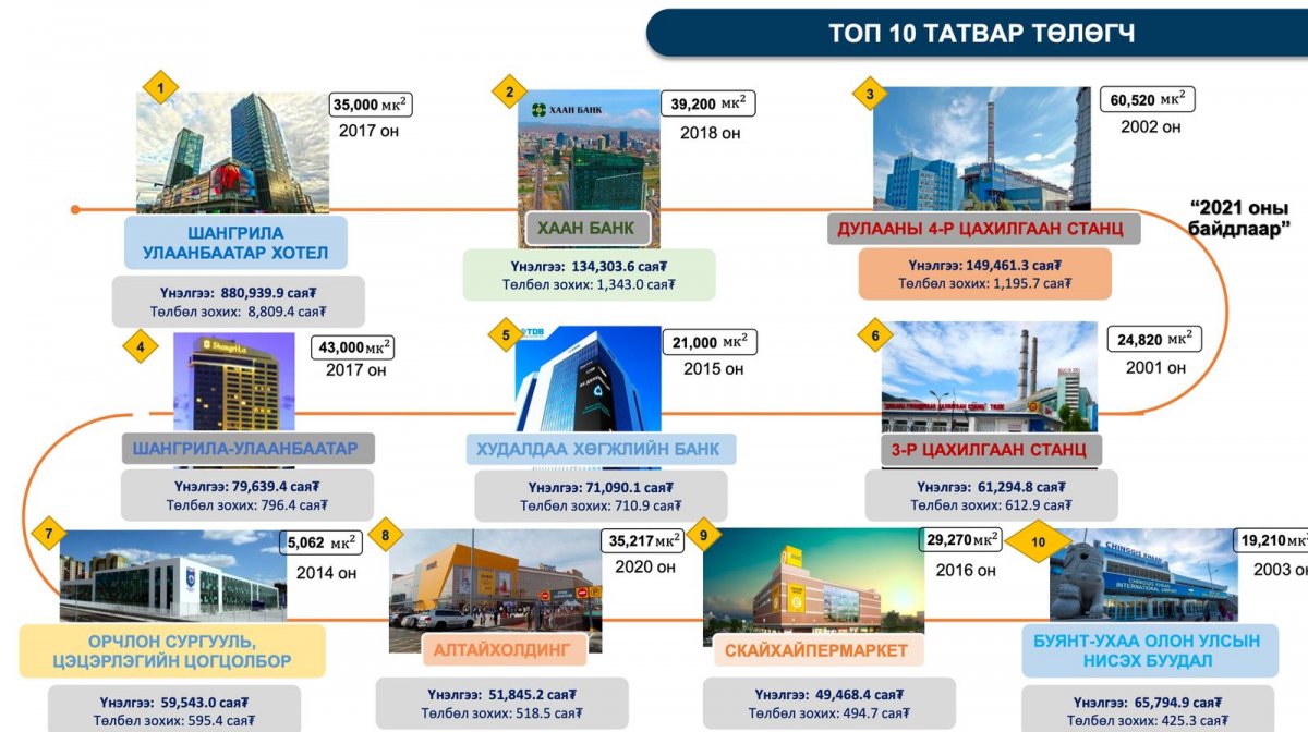 Үүнтэй холбогдуулан зах зээлийн ханшаас доогуур үнэлүүлэн татвар төлж буй найман үл хөдлөх хөрөнгийн мэдээллийг 2021 оны байдлаар танилцуулав.
