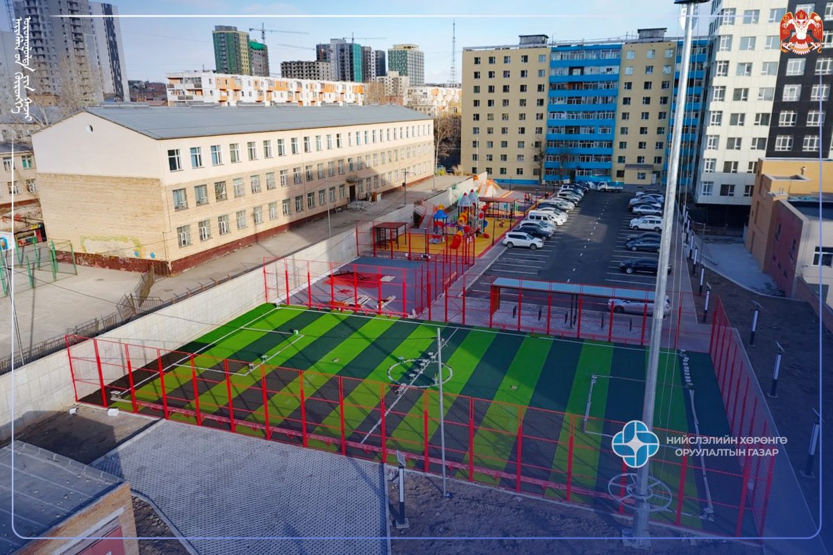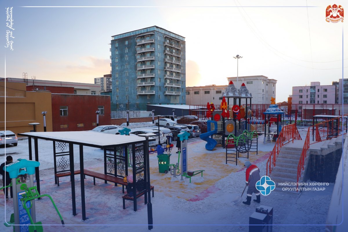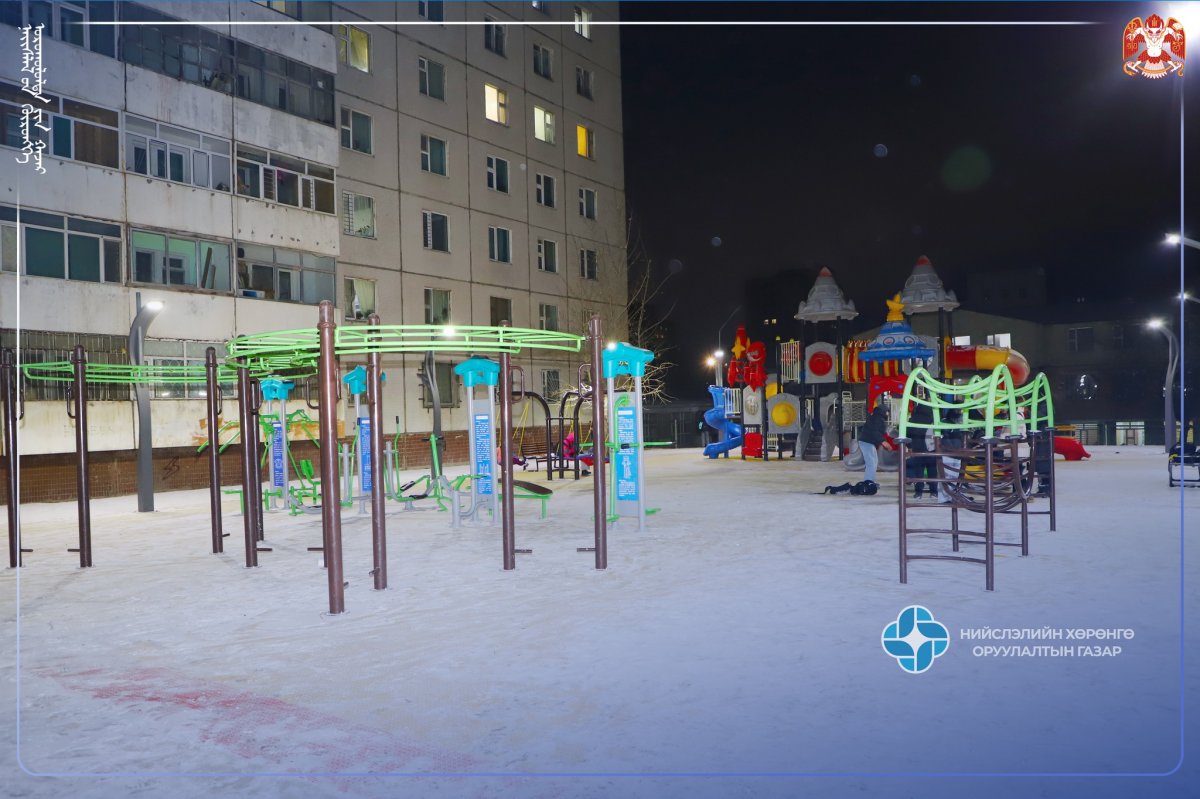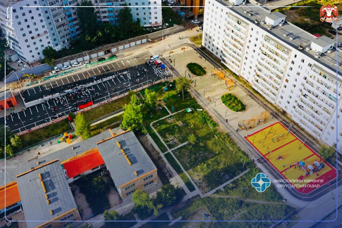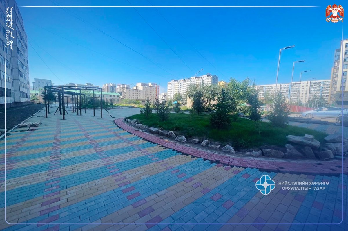 Бүтээн байгуулалтын талбайд авто машины зогсоол, пандус, явган зам, дугуйн зам, спорт талбай, тоглоомын талбай, тайз, гэрэлтүүлэг, чийрэгжүүлэлтийн төхөөрөмж, ногоон байгууламж, сандал сүүдрэвч, хогийн сав байршуулж тохижилтын ажлыг тус тус гүйцэтгээд байна.