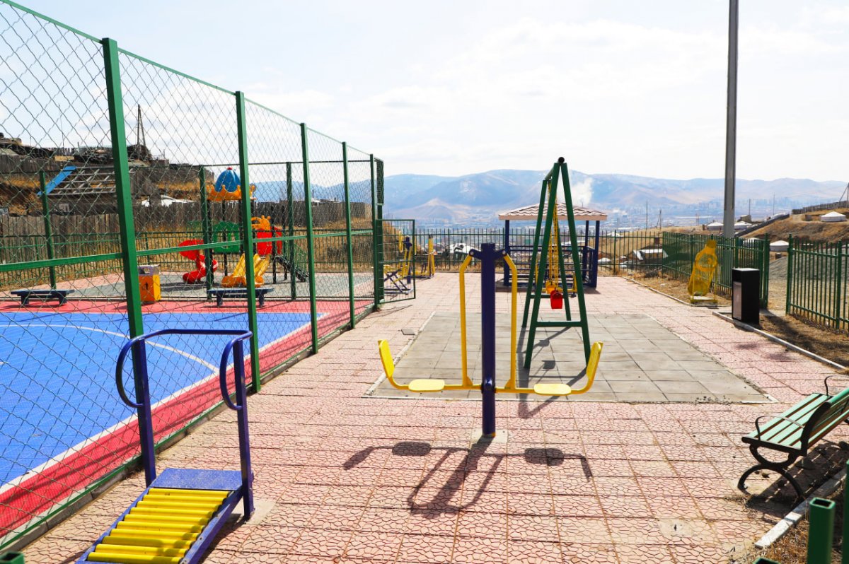 Уг тоглоомын талбайн засвар шинэчлэлийн хүрээнд талбайн тохижилт хийж, сүүдрэвч будаж, савлуур, гулсуур засаж, хайлаас мод тарьж, хогийн сав суурилуулж, 3х3 сагсан бөмбөгийн талбайг шинэчлэн тохижуулав.