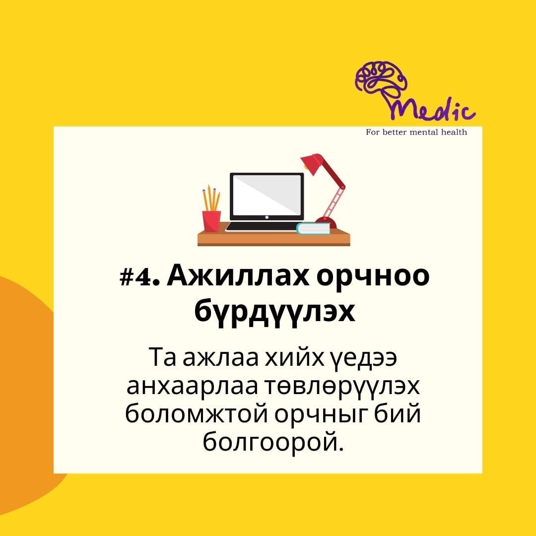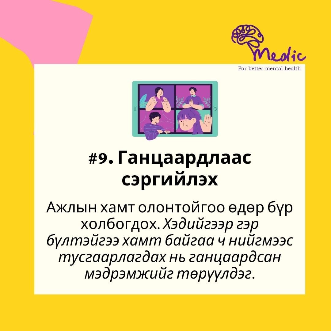 СЭМҮТ-ийн сэтгэцийн эмч нараас бүрдсэн MEDIC пэйжийн хамт олны зүгээс "Хөл хорионы үед гэрээсээ хэрхэн ажиллах, ажлын бүтээмжээ хэрхэн нэмэгдүүлэх" талаар дараах зөвлөгөөг өглөө.