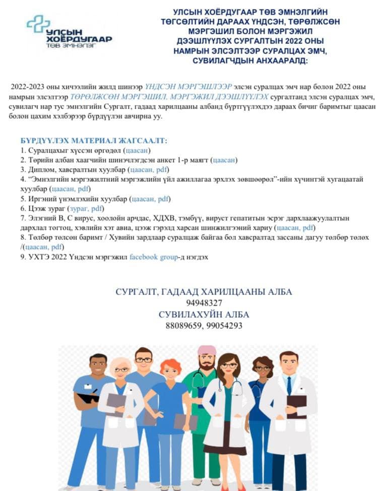 УХТЭ: 2022 оны намрын элсэлтээр суралцах эмч, сувилагчдын АНХААРАЛД