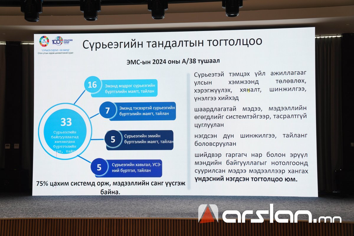 Монгол Улсад сүрьеэгийн салбар үүсэж хөгжсөн түүхэн 100 жилийн ойд зориулсан "СҮРЬЕЭ СУДЛАЛ-100 ЖИЛД" сэдэвт олон улсын эрдэм шинжилгээний хурлыг зохион байгуулж байна.