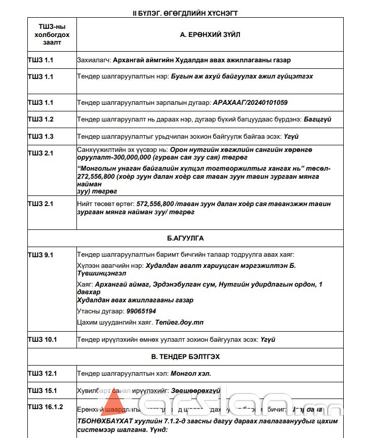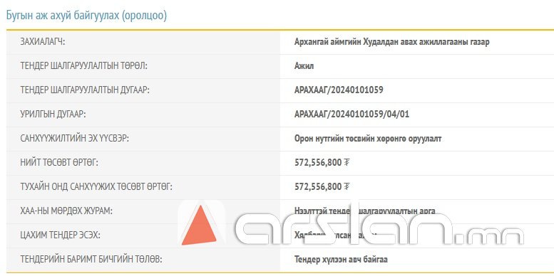 Архангай аймгийн Худалдан авах ажиллагааны газраас ₮572 саяар "Бугын аж ахуй байгуулах " ТЕНДЕР зарлажээ.