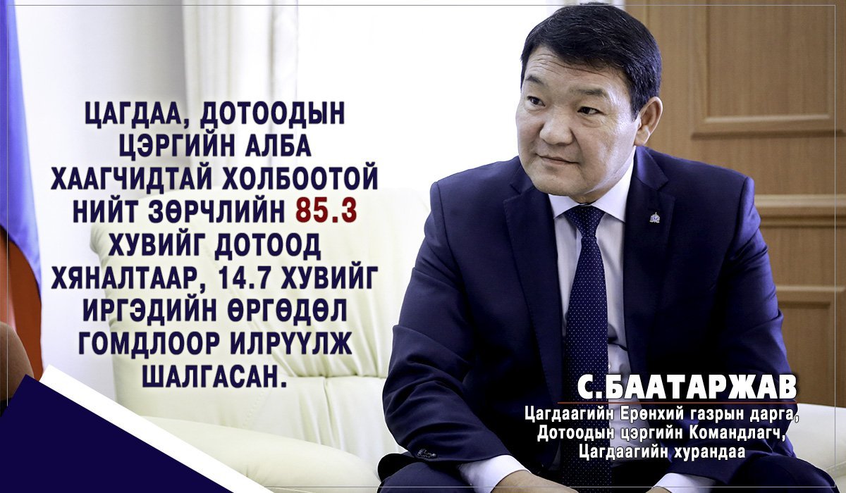 Цагдаагийн байгууллагын бодлого чиглэл, үйл ажиллагаа болон зохион байгуулж байгаа арга хэмжээ, олон нийтийн анхаарал татсан зарим томоохон хэргүүдийн талаар Цагдаагийн ерөнхий газрын дарга, Дотоодын цэргийн командлагч, цагдаагийн хурандаа С.Баатаржав дэлгэрэнгүй ярилцжээ. Тэрээр ярилцлагандаа "... Юун түрүүнд ажлаа аваад шинэчилсэн хуулиудтай үйл ажиллагаагаа нийцүүлэх зорилгоор эрүү, хэв журмын нөхцөл байдалд бодитой судалгаа хийлгэж, үнэлэлт дүгнэлт өгөх, удирдлага зохион байгуулалтын болон бүтцийн зарим өөрчлөлтүүд хийх, алба хаагчдын хүний нөөцийн зөв оновчтой бодлого хэрэгжүүлэх, тэдний мэдлэг, ур чадвар, сахилга хариуцлагыг сайжруулах гээд цаг үеийн нөхцөл байдалтайгаа уялдуулсан арга хэмжээнүүдийг авч хэрэгжүүлсэн. Ер нь сүүлийн 4-5 жилд цагдаагийн байгууллагад орон тооны хувьд өөрчлөлт хийгдээгүй, нэмэгдээгүй байсан.Манай алба хаагчид ажлын ачаалал их байгаа ч ажлаас хойш суулгүй, хуулиар хүлээсэн чиг үүргээ нэр төртэй биелүүлж байгаа. Нэг хэсэг улстөрчид, гишүүд, эрх бүхий албан тушаалтан, танил талаасаа дэмжлэг авч удирдах албан тушаалд томилогдох, цол, шагнал авах асуудал цагдаагийн байгууллагад хавтгайрсан байсныг нуух шаардлагагүй. Харин одоо алба хаагч нарын зүгээс болон бусад байгууллага, албан тушаалтнаас байгууллагын үйл ажиллагаа түүн дотроо хүний нөөцийн бодлого, шийдвэрт нөлөөлүүлэх, нөлөөлөх гэсэн хандлага арилсан. Онцлоод хэлэхэд намайг ажил авснаас хойш Ерөнхийлөгч, УИХ-ын дарга, Ерөнхий сайд, Хууль зүй дотоод хэргийн сайдын зүгээс дээрх чиглэлээр ямар нэгэн хүсэлт, шахалт ирээгүй, миний гаргасан шийдвэрт нөлөөлөөгүй дээ. Алба хаагчид маань томилогдсон ажлын байр, албан тушаалдаа хичээн зүтгэж, хамт олныхоо итгэл, сайшаалыг хүлээж, ажилдаа “эзэн нь” байж гэмээ нь ахиж дэвшинэ гэдэг нэгдсэн ойлголттой болж, удирдлагын шийдвэрт талархалтай хандаж байгаа. Удирдах албан тушаалд томилогдож буй алба хаагчдын хамгийн гол шалгуур бол туршлага, дадлага, бие бүрэлдэхүүнд хүлээн зөвшөөрөгдөх явдал юм. Цаашид ч цагдаа, дотоодын цэргийн алба хаагчдын нийгмийн асуудлыг шийдвэрлэхэд удирдлагаас шалтгаалах бүхий л арга хэмжээг авна..." хэмээн онцоллоо.