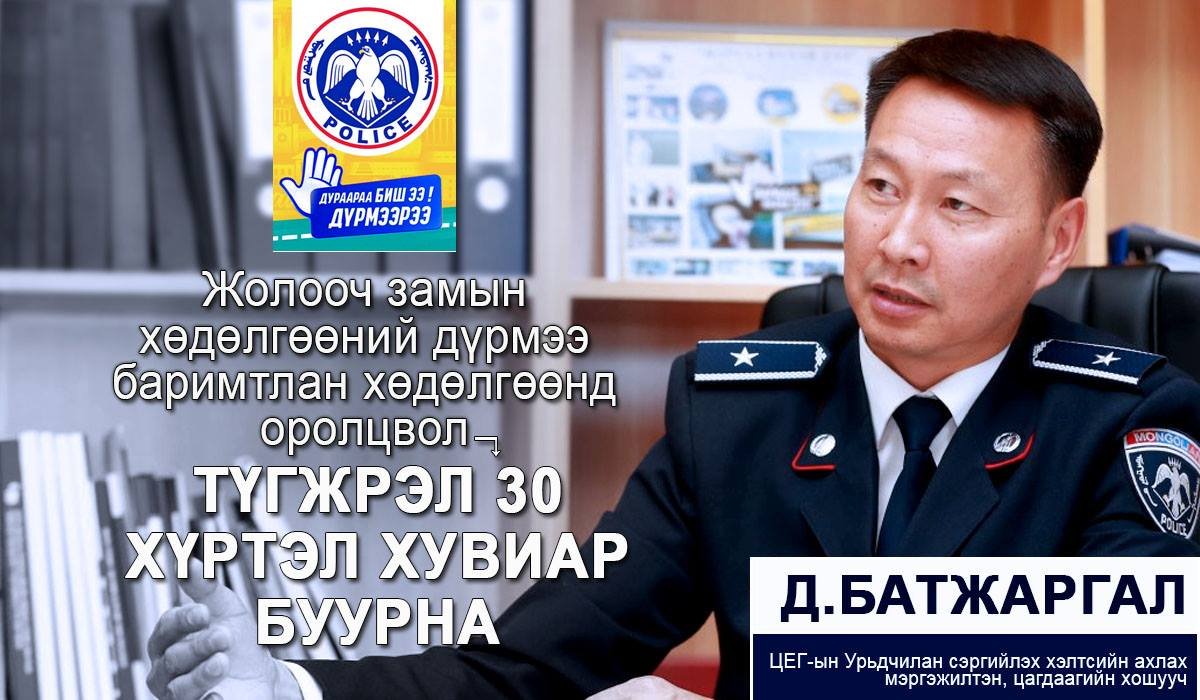 Д.БАТЖАРГАЛ: “ДУРААРАА БИШ ДҮРМЭЭРЭЭ“ замын хөдөлгөөнд оролцвол түгжрэл 30 хувиар буурна