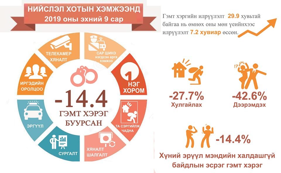 Нийслэлийн хэмжээнд энэ оны эхний 9 сард нийт гэмт хэрэг -14.4 хувиар БУУРЧЭЭ