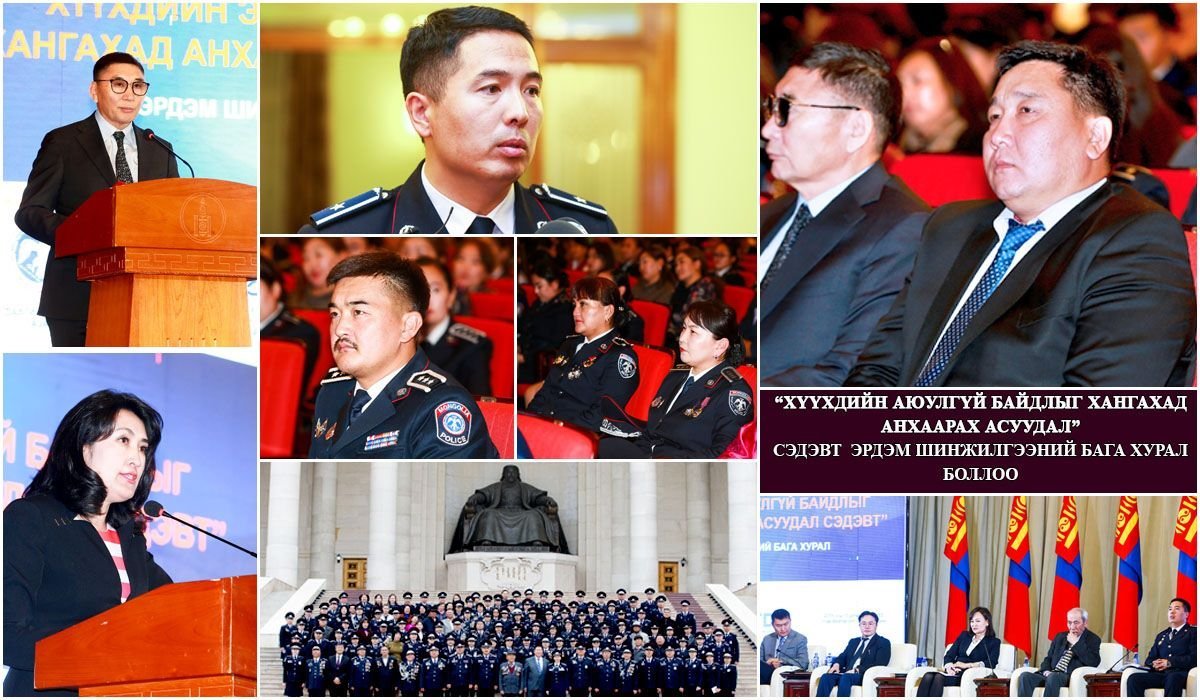Цагдаагийн байгууллагын Хүүхдийн албаны түүхт 70 жилийн ойг тохиолдуулан “Хүүхдийн эрх, аюулгүй байдлыг хангахад анхаарах асуудал” сэдэвт эрдэм шинжилгээний хурлыг энэ сарын 10-ны өдөр Төрийн ордонд зохион байгууллаа.Цагдаагийн ерөнхий газраас санаачлан Монгол Улсын Ерөнхий сайдын ивээл дор зохион байгуулагдаж байгаа эрдэм шинжилгээний хуралд ХЗДХЯ, ХНХЯ, БСШУСЯ болон эцэг эхийн төлөөлөл, сургуулийн нийгмийн ажилтан, цагдаагийн байгууллагын алба хаагч нар оролцлоо. Ирээдэй хойч үе болсон хүүхэд, залуучуудын сайн сайхны төлөө тэдэнд гэмт хэргийн хор уршиг, үр дагавар, хуулийн хариуцлага, эцэг эхийн үүрэг хариуцлагыг нэмэгдүүлэх эерэг аргаар хүмүүжүүлэх зорилгоор “Хүүхдийн эрх, аюулгүй байдлыг хангахад анхаарах асуудал” сэдэвт эрдэм шинжилгээний хурлыг зохион байгуулж байгаа нь энэ юм.