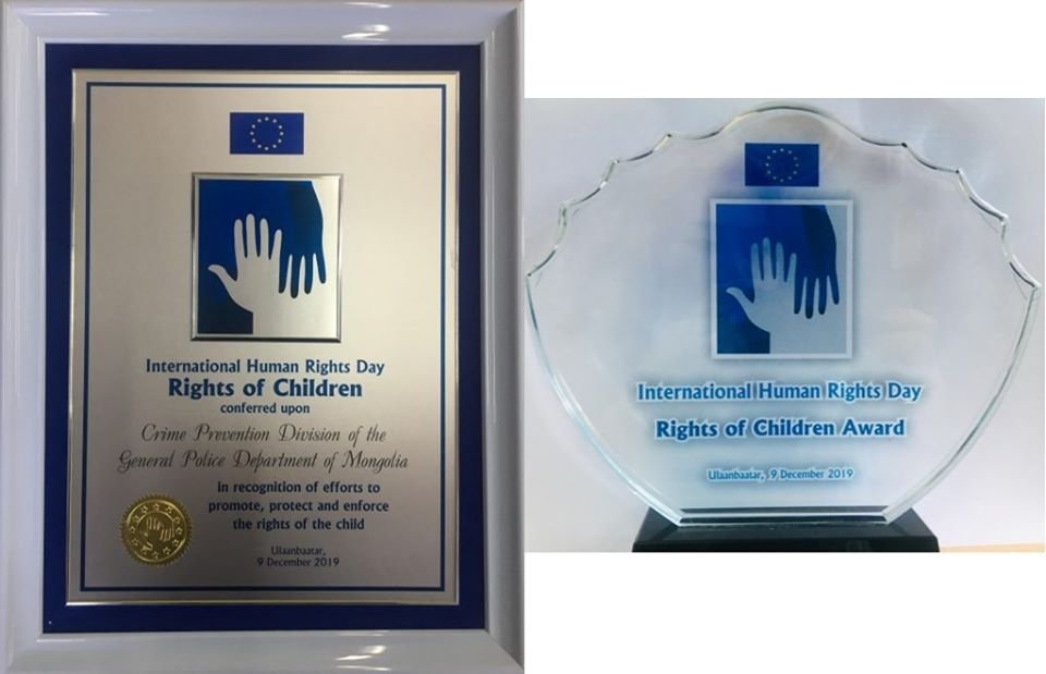Европын холбооноос ЦЕГ-ын Урьдчилан сэргийлэх хэлтэс “ХҮҮХДИЙН ЭРХ ХАМГААЛАГЧ” шагнал хүртсэн байна