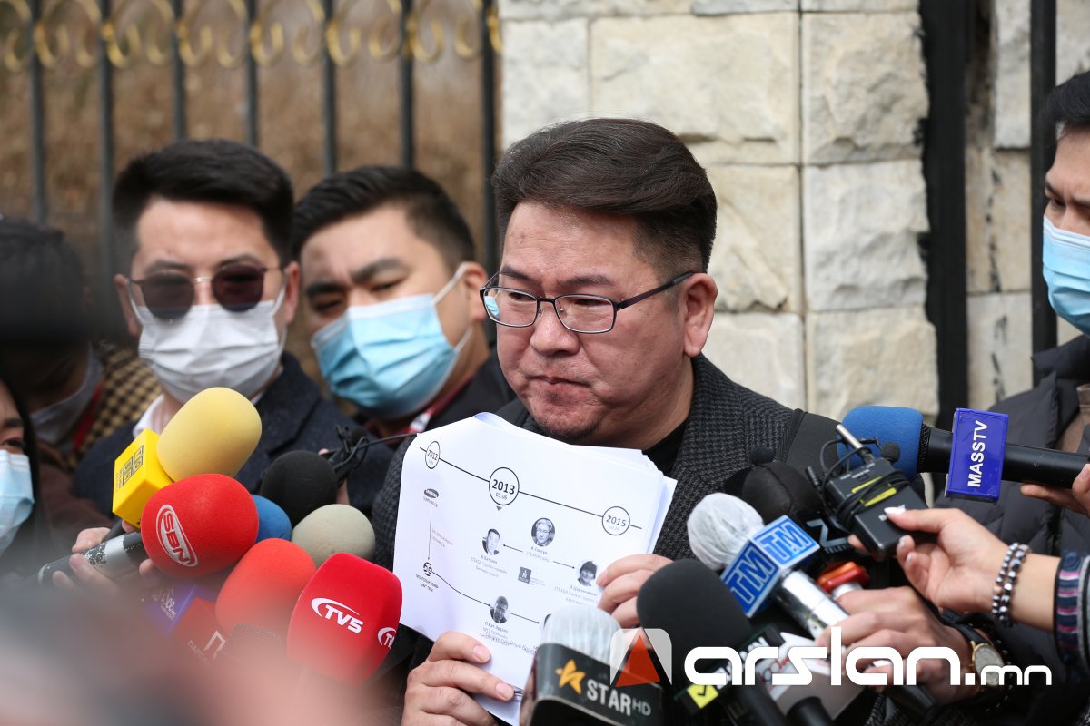 Тэрбээр “Өнөөдөр би улсад онц их хэмжээний буюу 55 тэрбум төгрөгийн хохирол учруулсан гэмт хэргийн нотлох баримтыг танилцуулах гэж байна. Уг хэрэг Үндэсний аюулгүй байдлын зөвлөлийн дарга А.Гансүх, Ерөнхийлөгч Х.Баттулга, түүний “хонгил”-ын шүүх, прокуроруудтай холбогдож байгаа юм. Өнөөдөр би энэ бүлэглэл нуун дарагдуулж, хэрэгсэхгүй болгосон 55 тэрбум төгрөгийн хохирлыг нэхэмжилж ард түмэнд олгуулахаар мэдээлэл хийж байна.