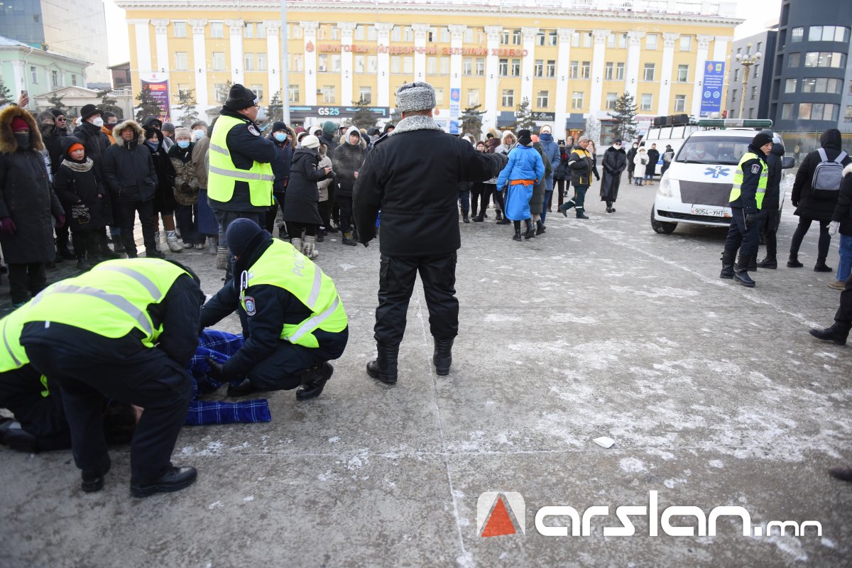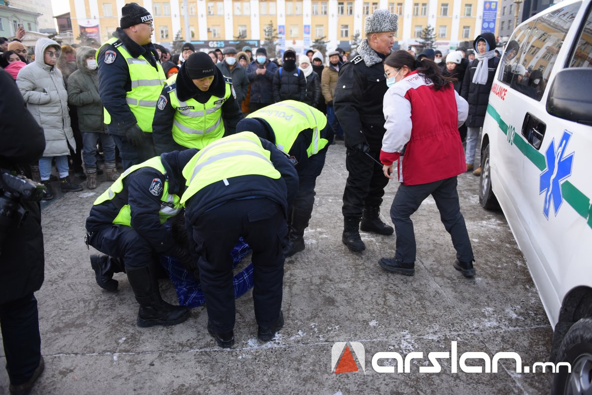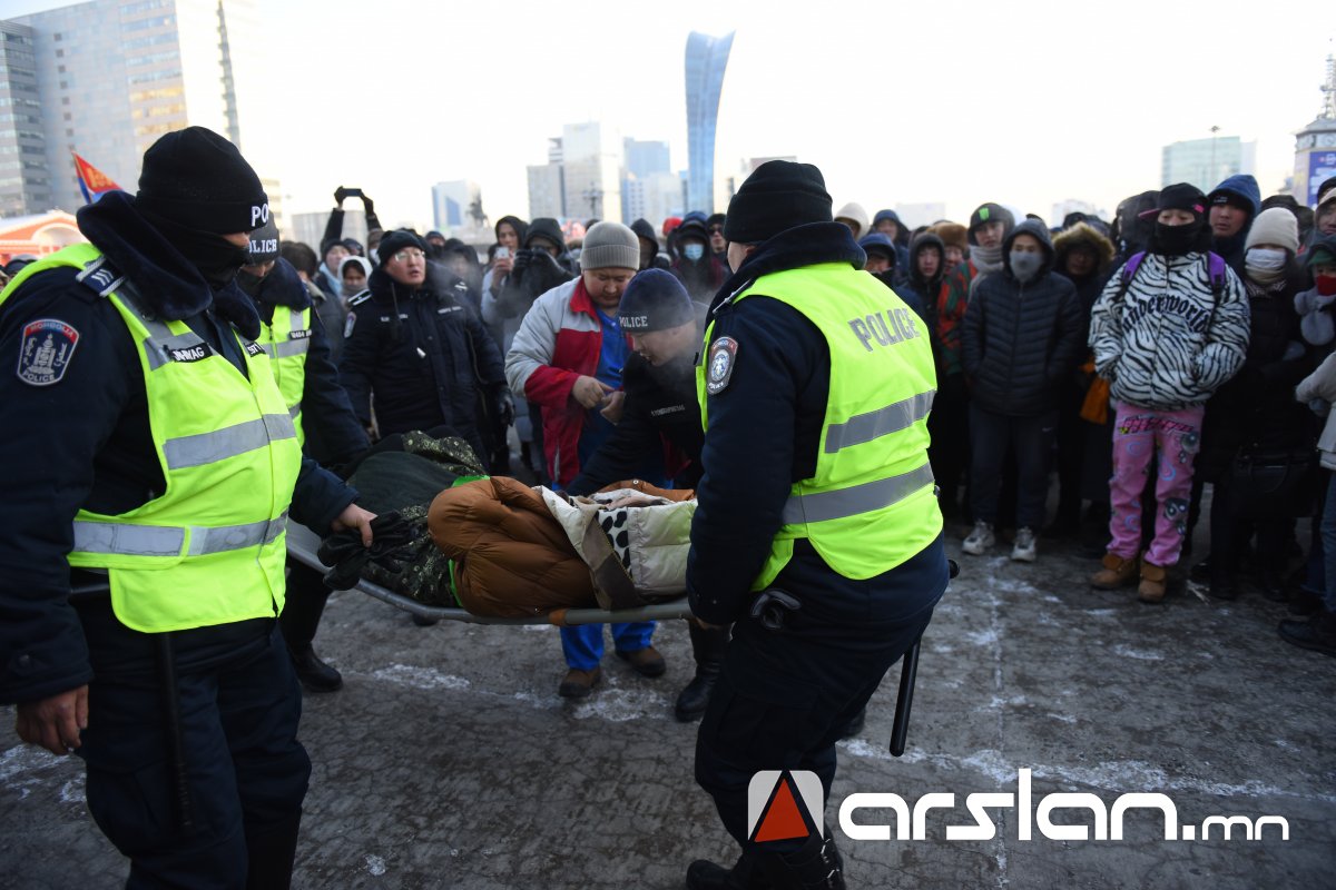 Энэ үеэр иргэд олноороо бие биенээ түлхсэнээс болж хоёр иргэн дарагдаж биеийн байдал муудсан тул Цагдаагийн байгууллагаас яаралтай чөлөөлөх коридор гаргаж, тухайн иргэнийг эмнэлгийн байгууллагад хүлээлгэж өгсөн байна.