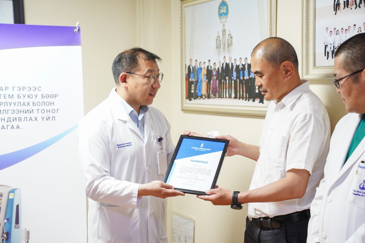 Энэ үеэр УНТЭ-ийн Ерөнхий захирал Б.Хишигжаргал хэлсэн үгэндээ “Эрхтэн шилжүүлэн суулгах төвийн эмч, мэргэжилтнүүд Монгол Улсад анх удаа цусны бүлэг ондоо донороос бөөр шилжүүлэн суулгах мэс заслыг амжилттай хийж, эмчлүүлэгчийн ар гэрээс өндөр үнэтэй аппаратыг хандивлаж байгаад талархаж байна.