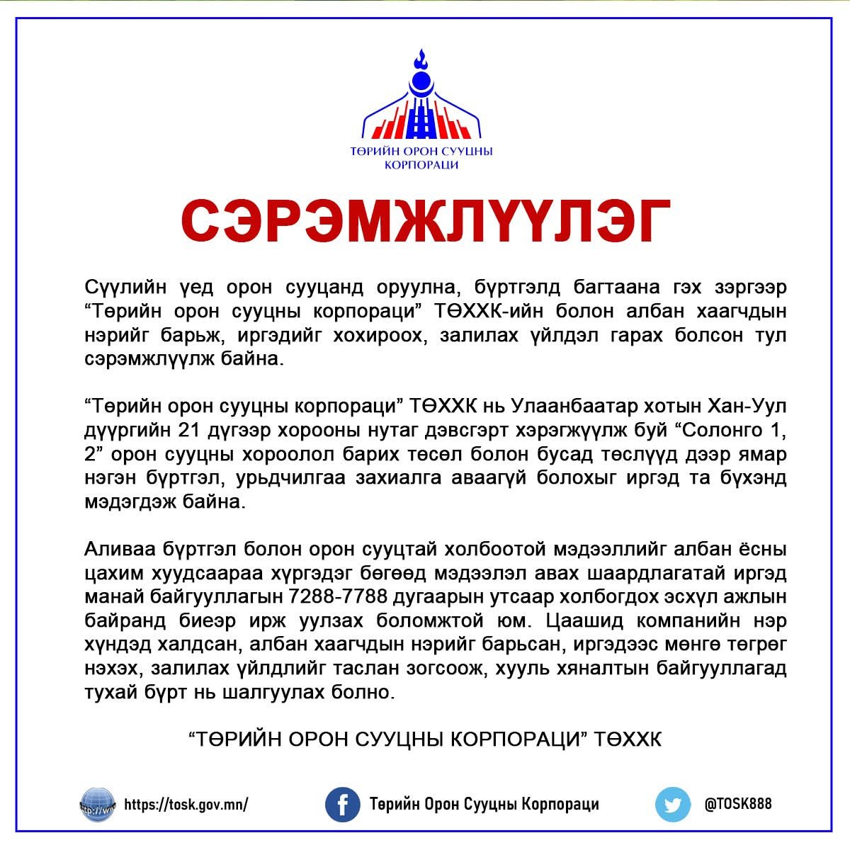 Иймд иргэдийг төөрөгдүүлж, худал мэдээллээр залилж, мөнгө төгрөгөөр нь хохироож байгаа гэмт этгээдүүдийн үйлдлийг таслан зогсоох үүднээс сэрэмжлүүлэг хүргэж, мэдэгдэл гаргажээ.